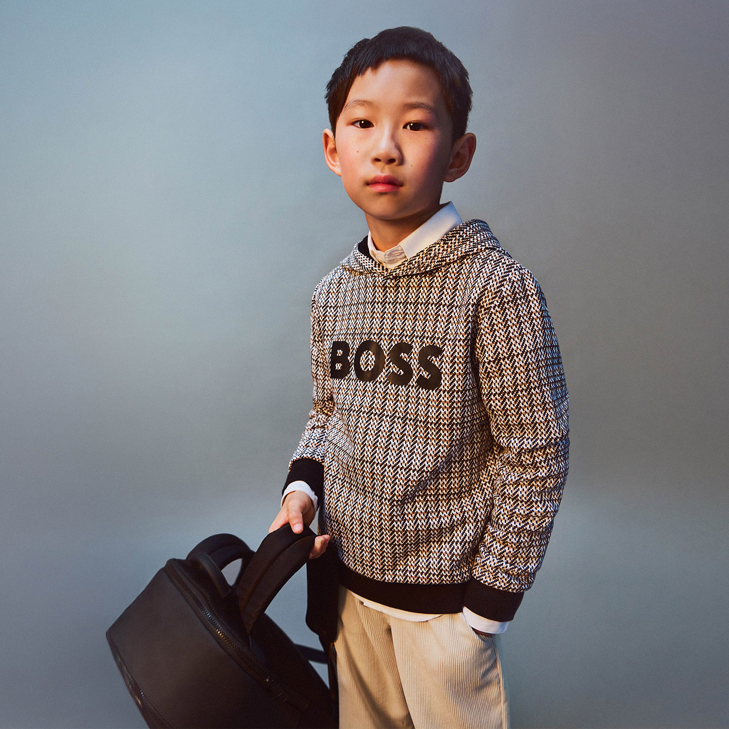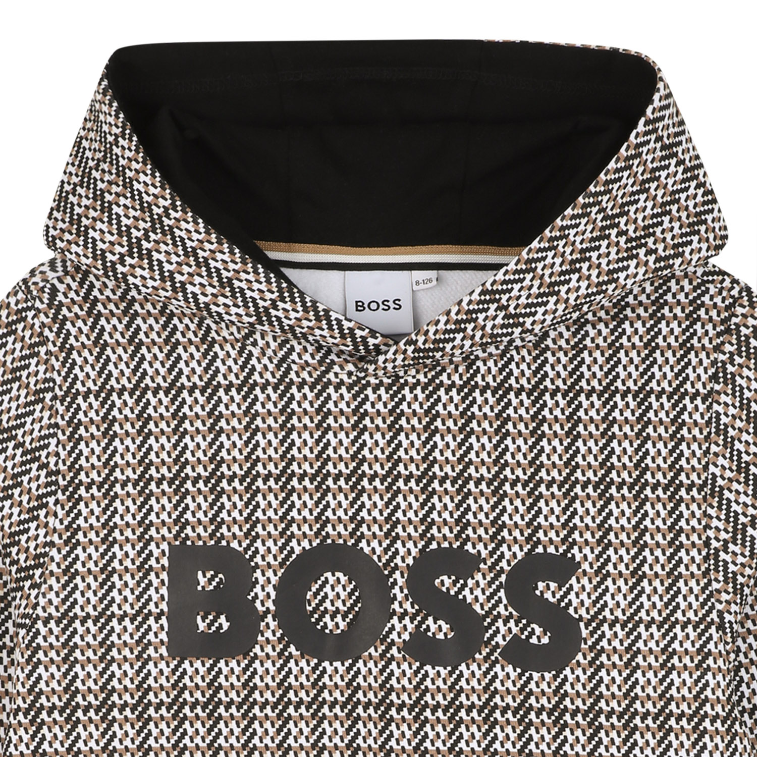 Hugo Boss cotton hooded sweatshirt in checked pattern with a logo printed in black.