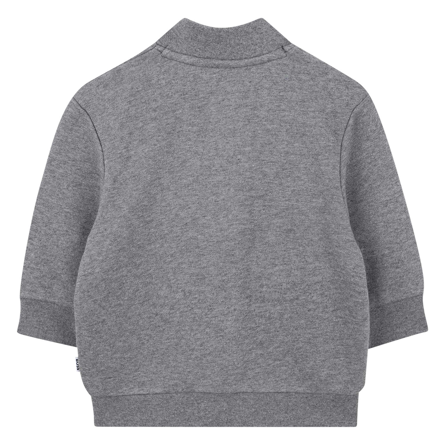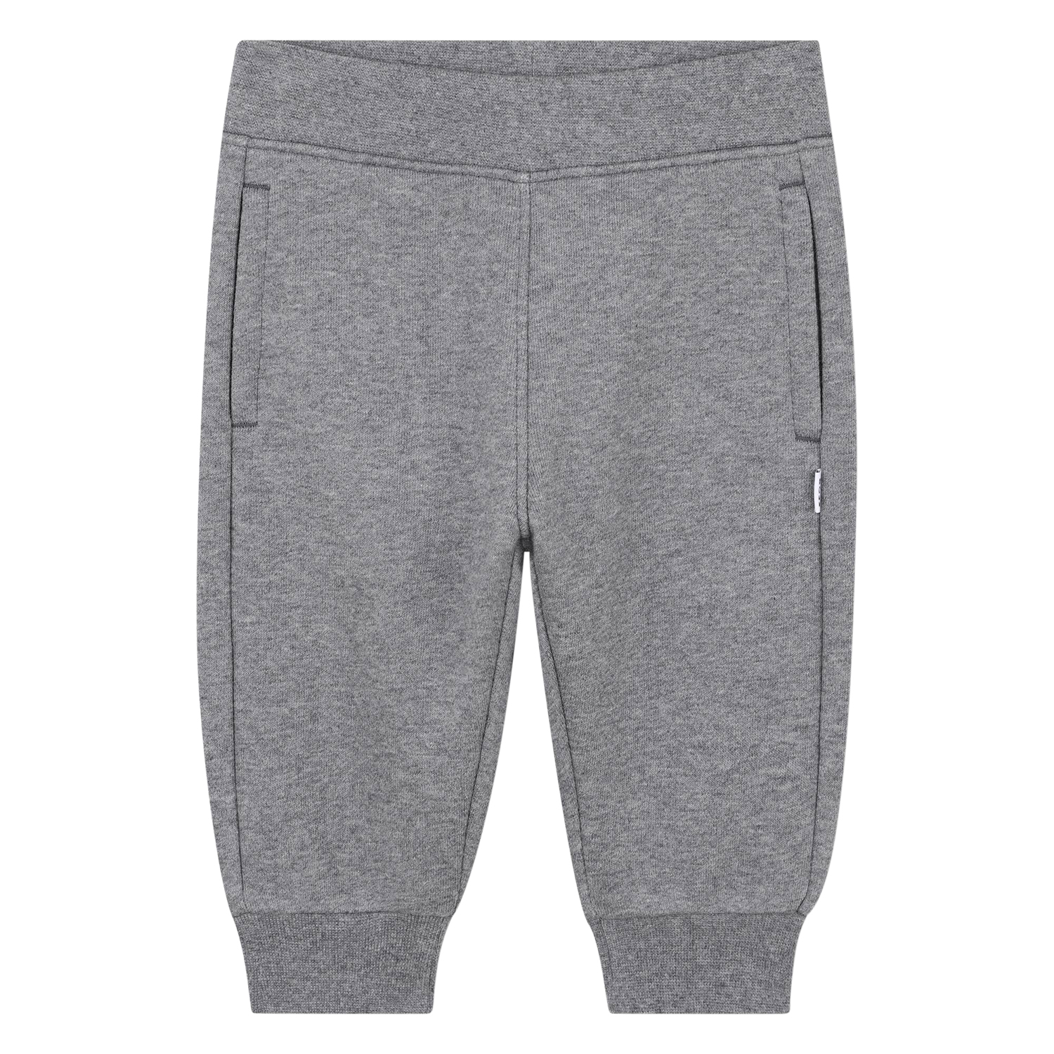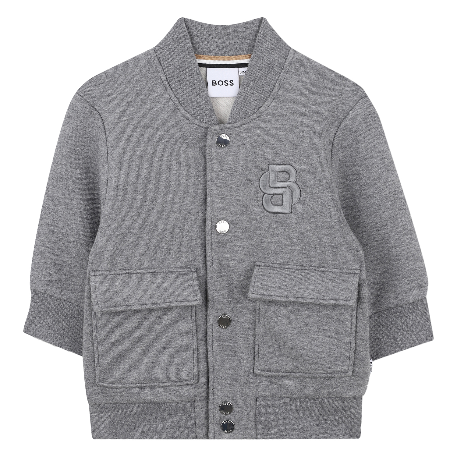 Hugo Boss dark grey cotton set of a bomber jacket and casual trousers. The jacket features square pockets, snap button fastening and a tone-to-tone embroidered monogram.