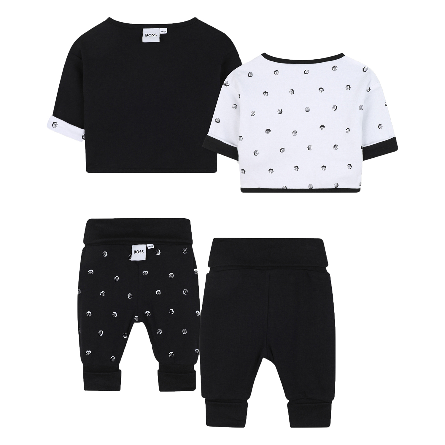Hugo Boss reversible cotton tracksuit in black and white colors. On the one side has logo printed and on the othe monogram pattern printed. You can mix and match up to four different styles.
