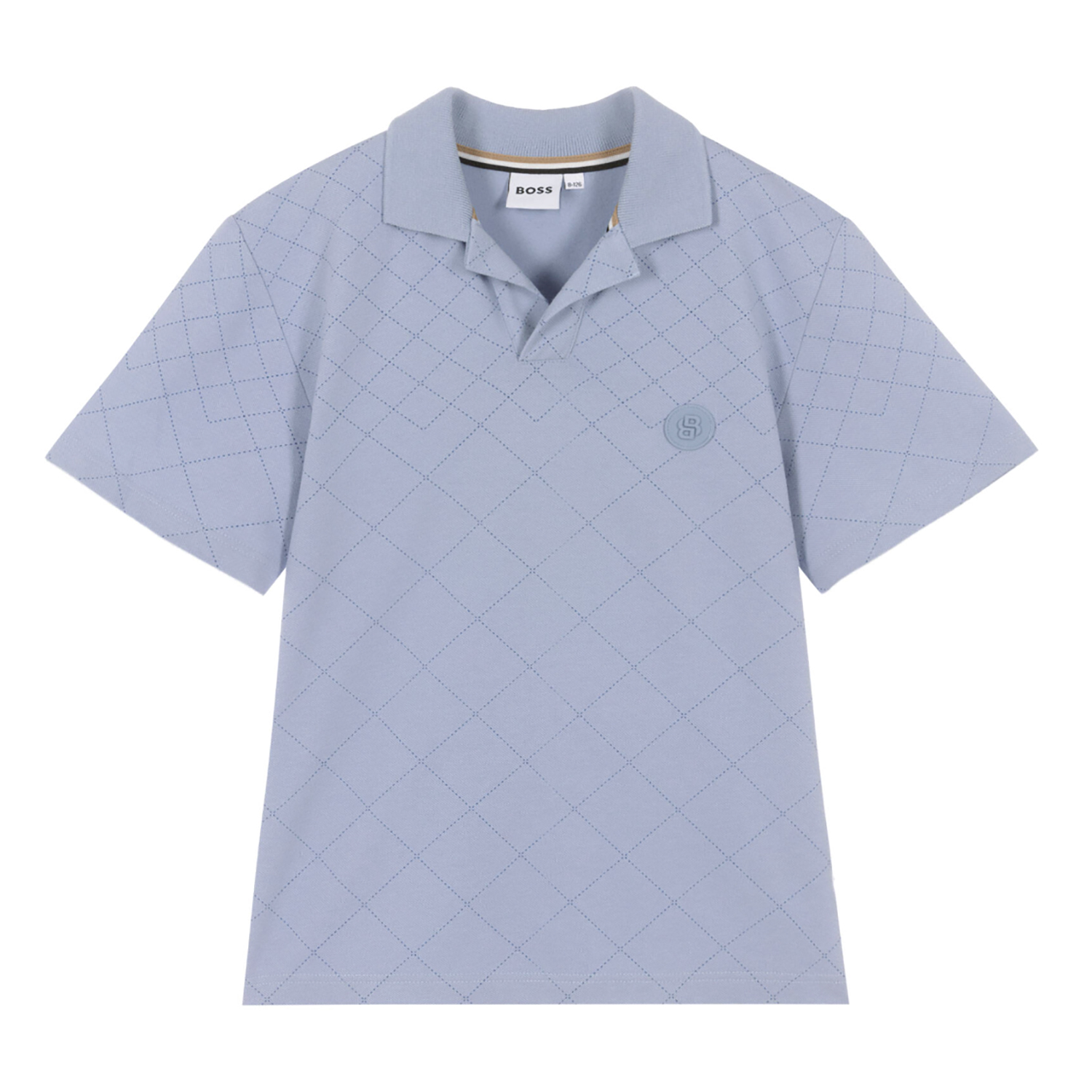 Hugo Boss light blue cotton pique polo t-shirt, featuring blue check stitching-style pattern and a tone-to-tone silicon logo.