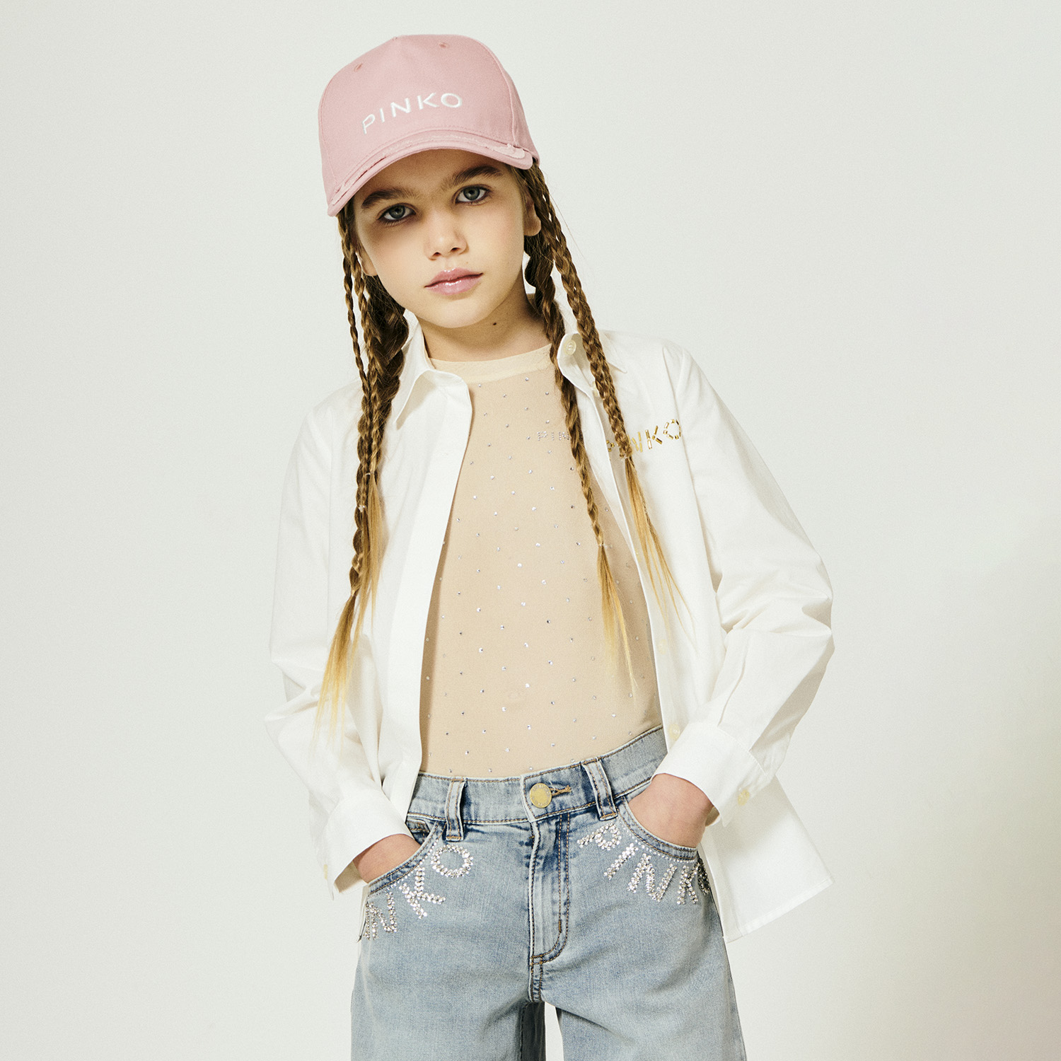 Pinko ivory tulle all-in-one (body) featuring all-over rhinestone applications and a soft lower part with snap button fastening.