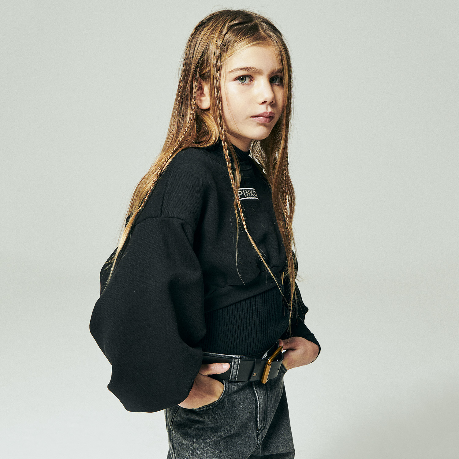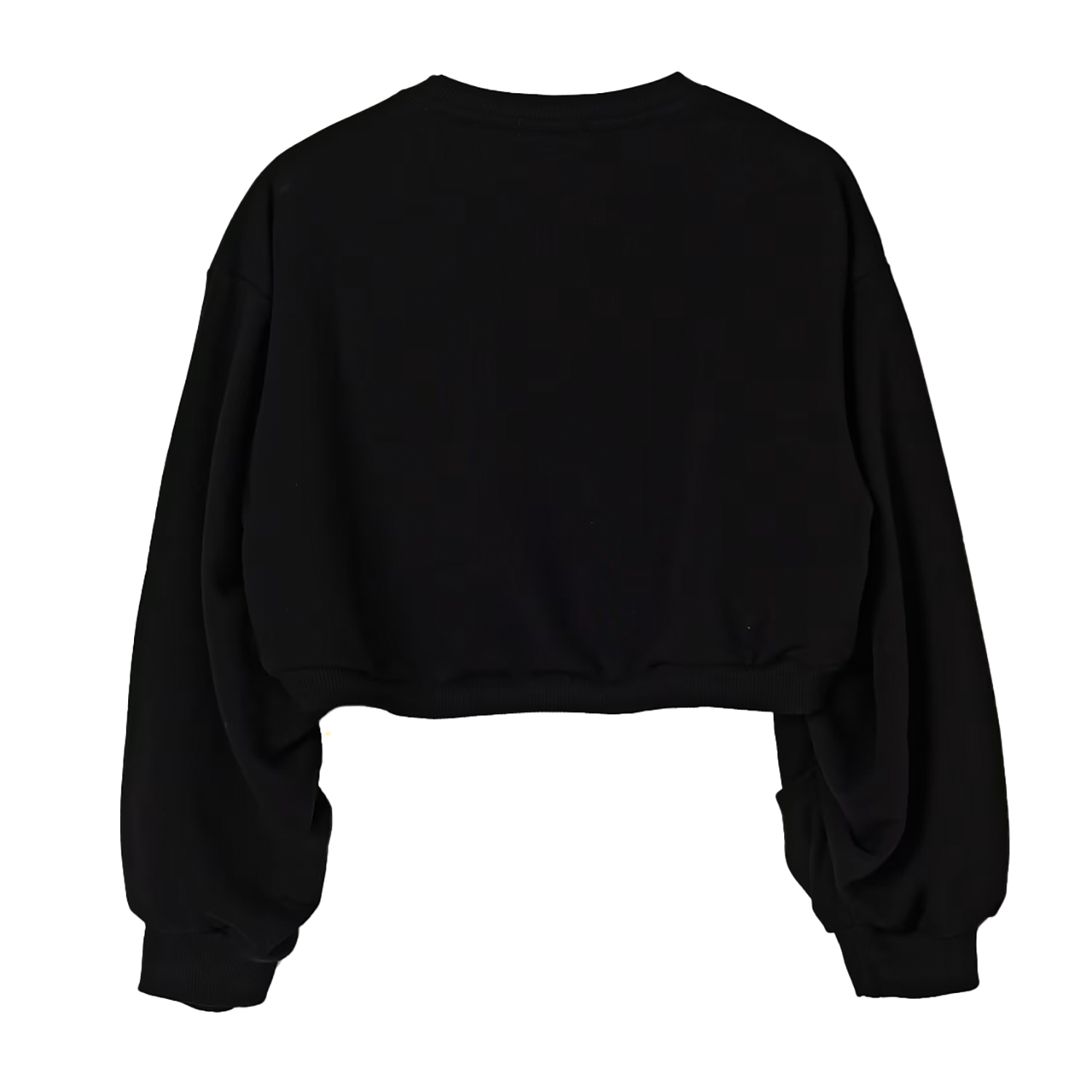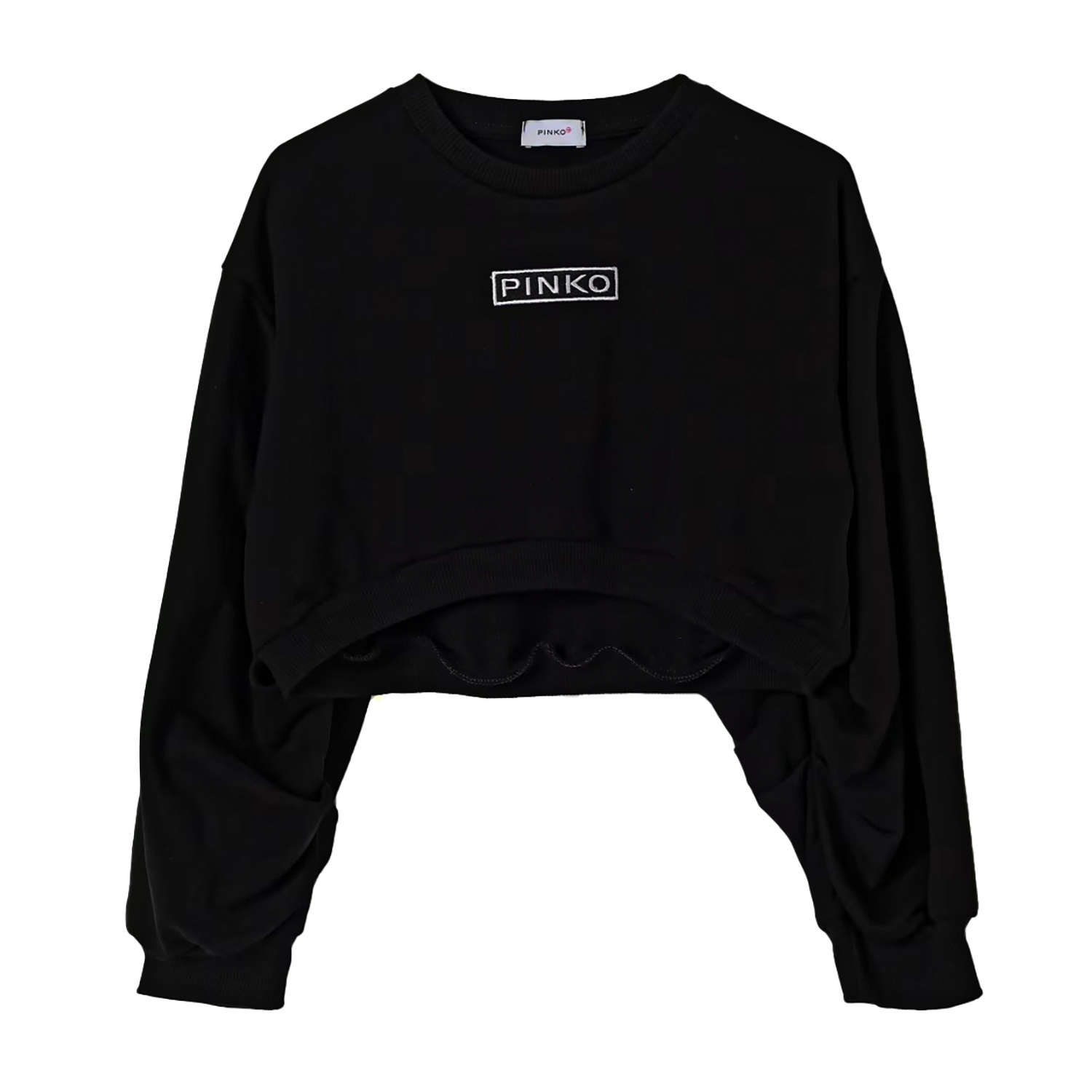 Pinko black cropped style sweatshirt with oversized sleeves and a logo label.
