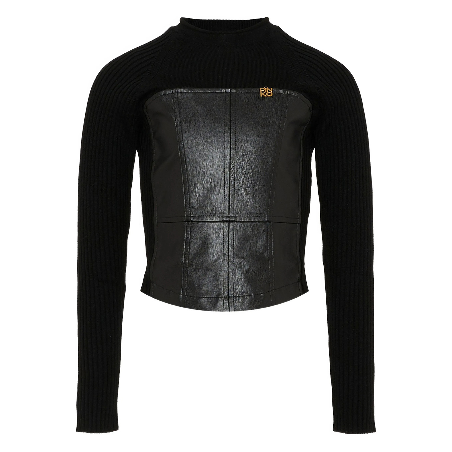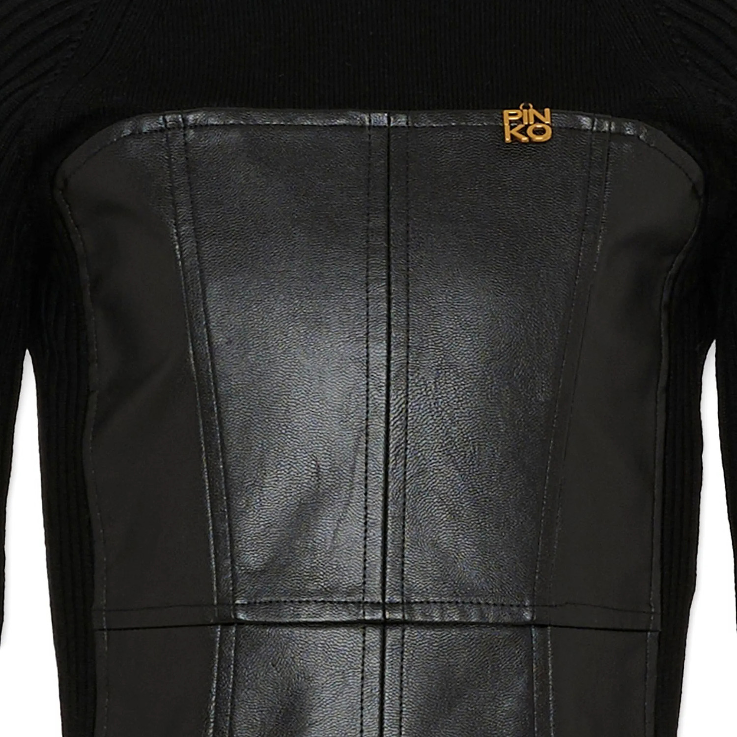 Pinko black knitted woolen blouse featuring an eco-leather front part along with a discreet logo.