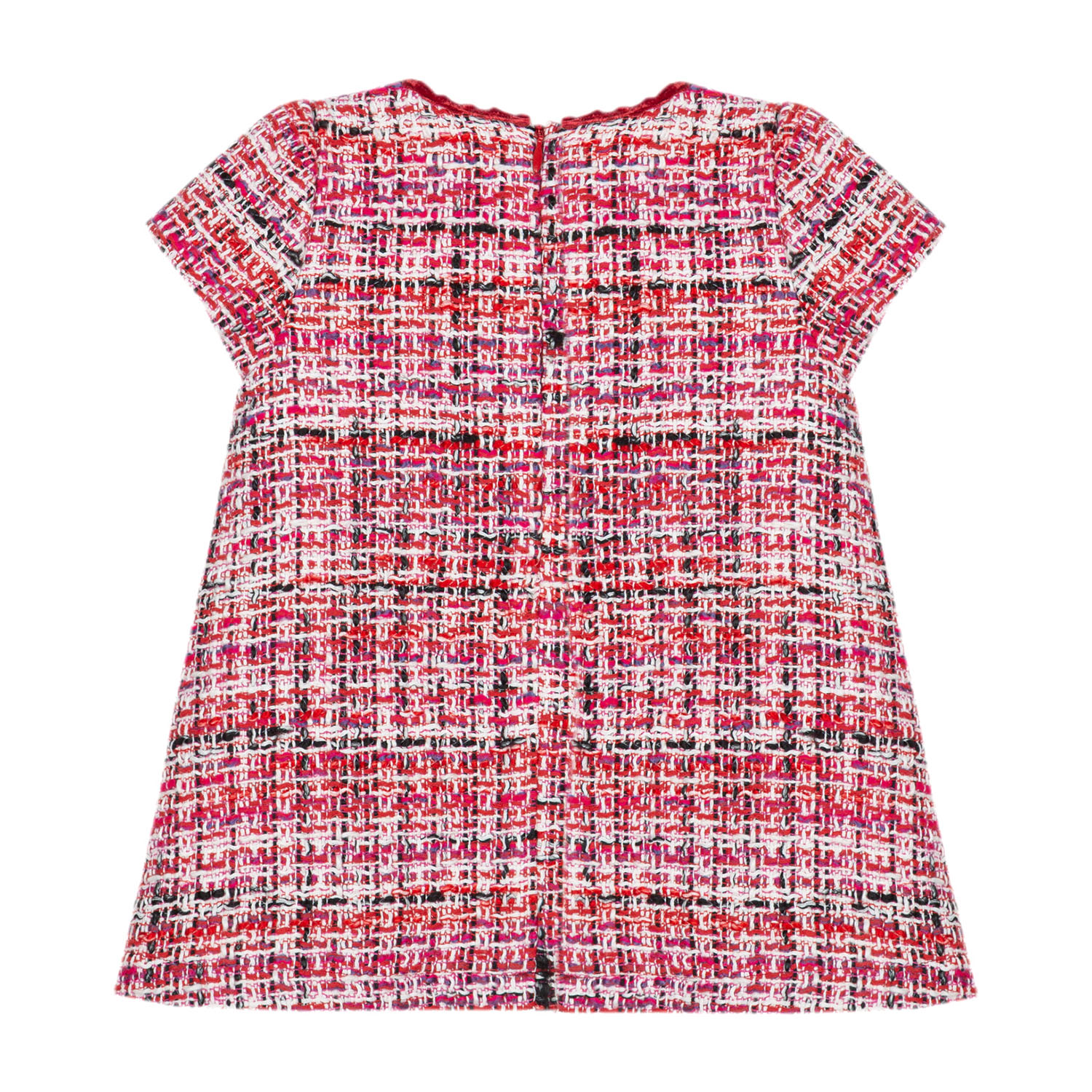 Patachou red tweed dress featuring velour bow application and details, jewel-style buttons and a discreet zip fastening at the back.