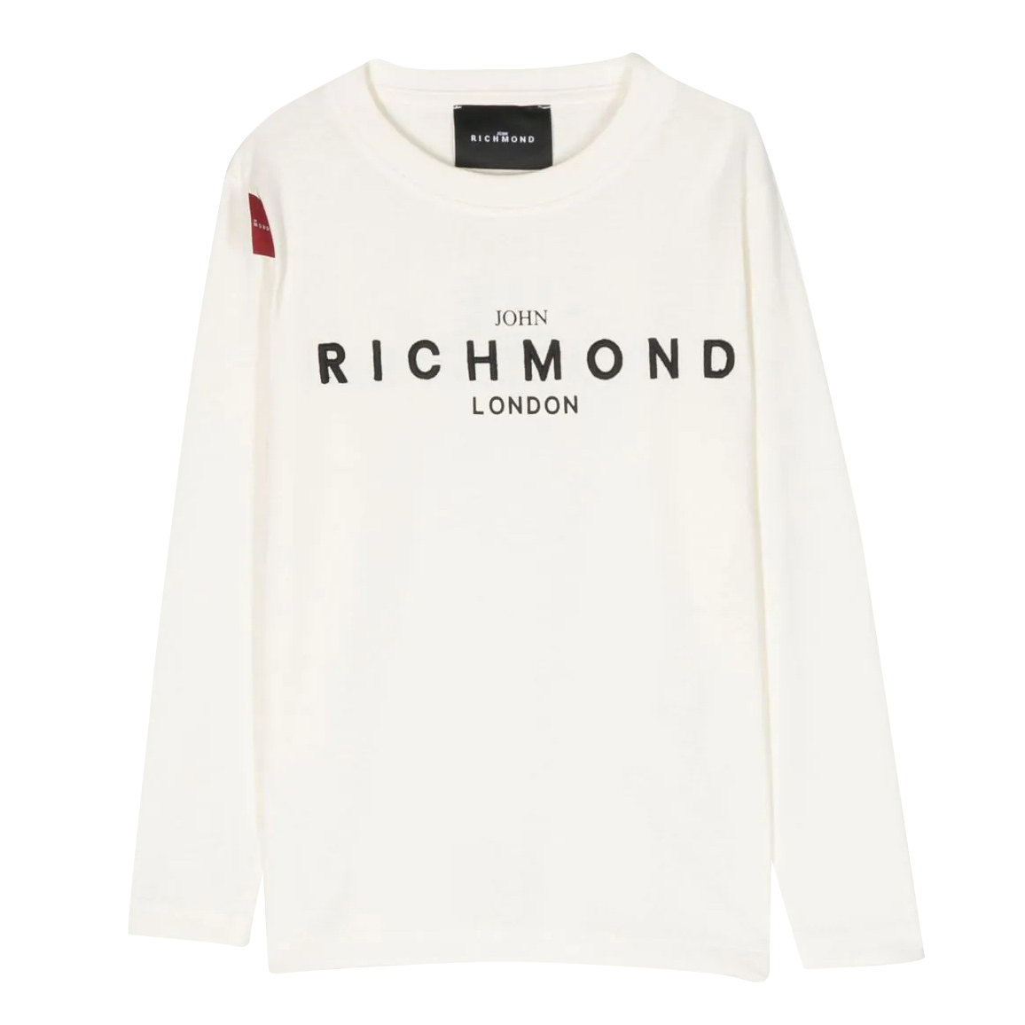 John Richmond off-white organic cotton t-shirt with black embroidered logo on the chest.
