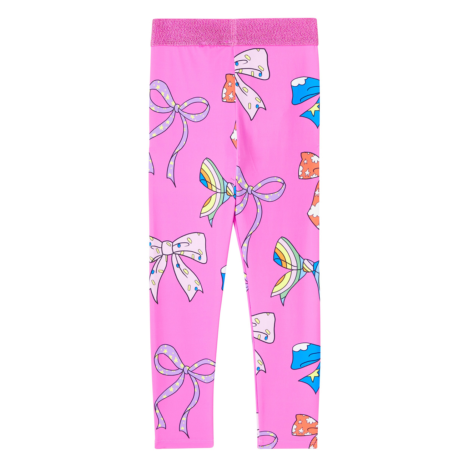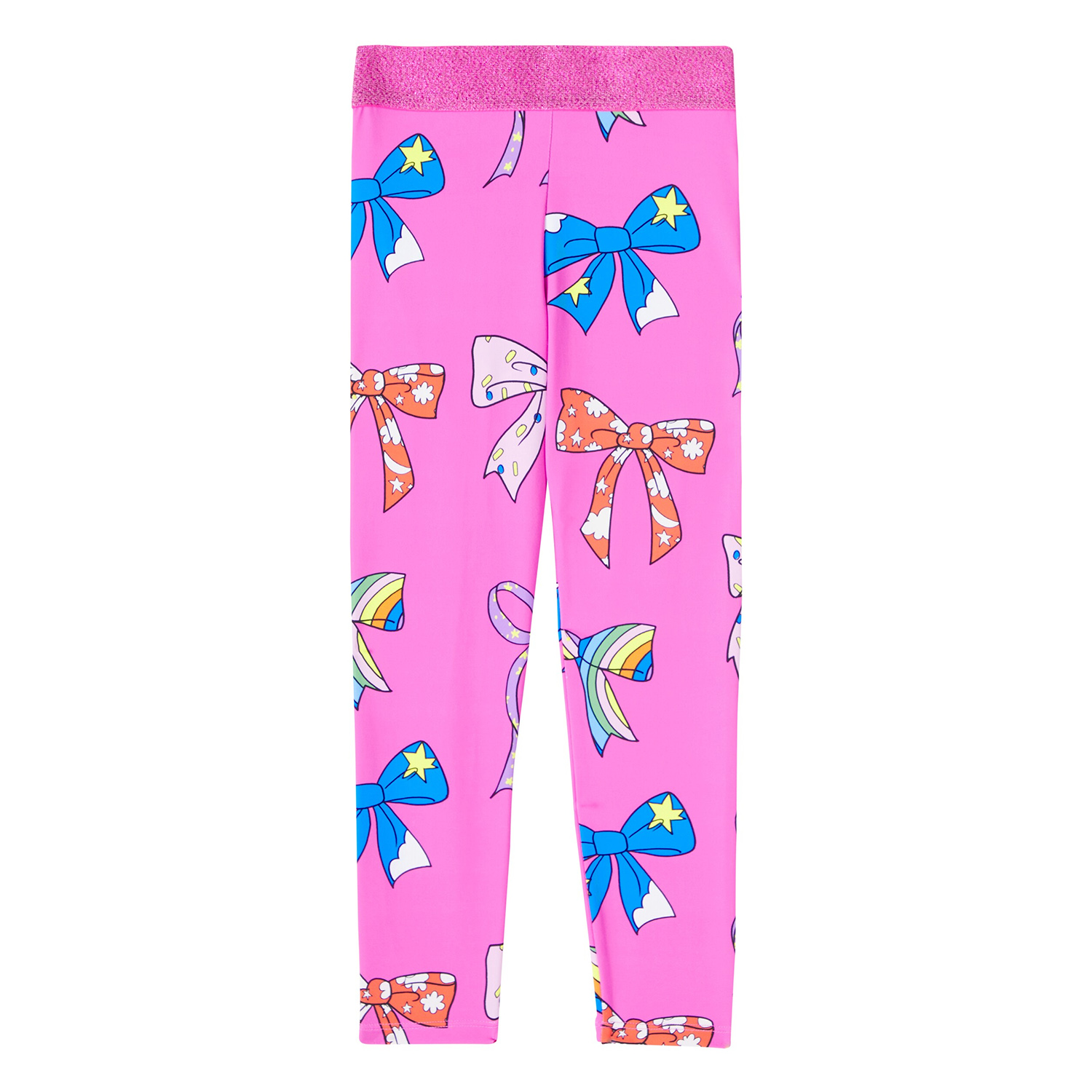 Stella McCartney fuchsia leggings with lurex waistband and colorful stamps printed.