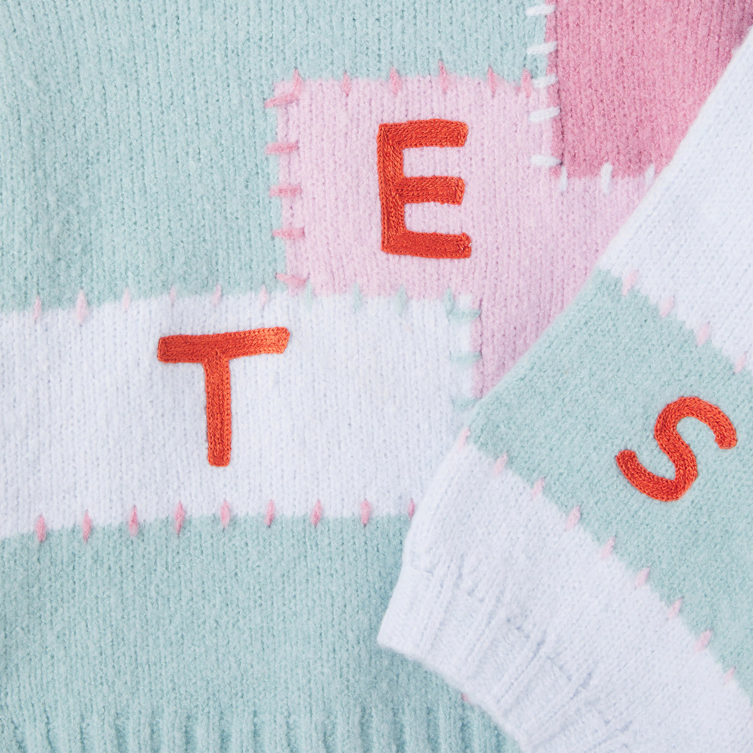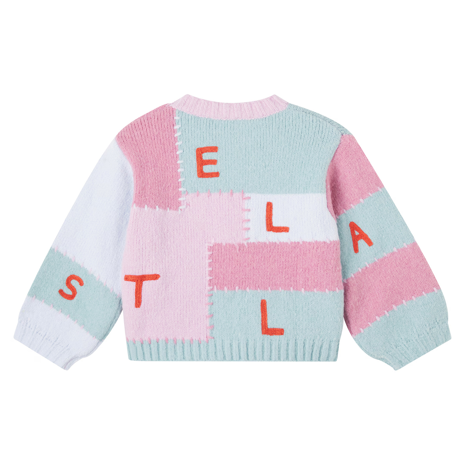 Stella McCartney colorful knitwear featuring stitching details, ribbed cuffs, waist and embroidered logos.