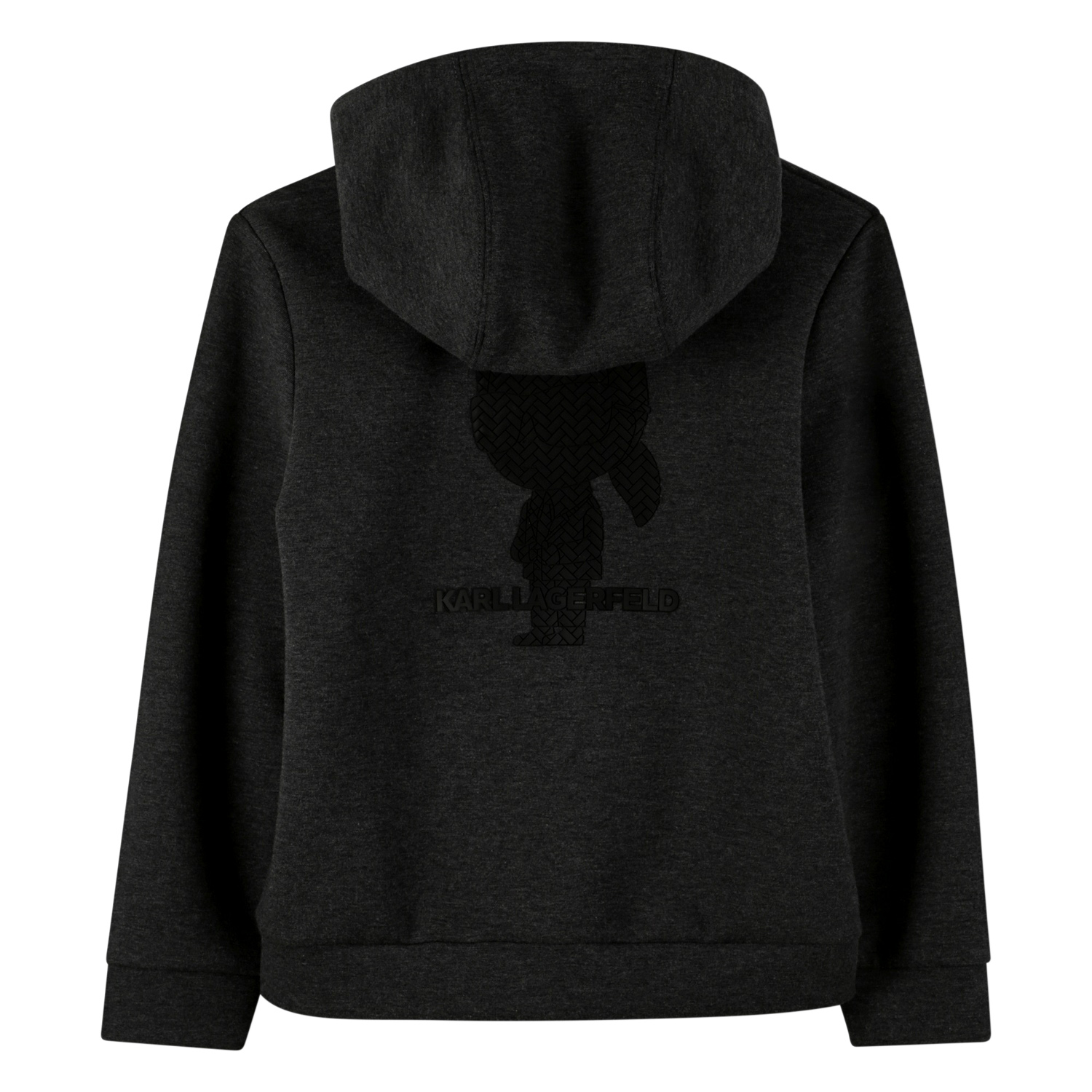 Karl Lagerfeld dark grey cotton tracksuit with a full zip hoodie which features a Karl figure at the back and elasticated trousers with logo elastic waistband.