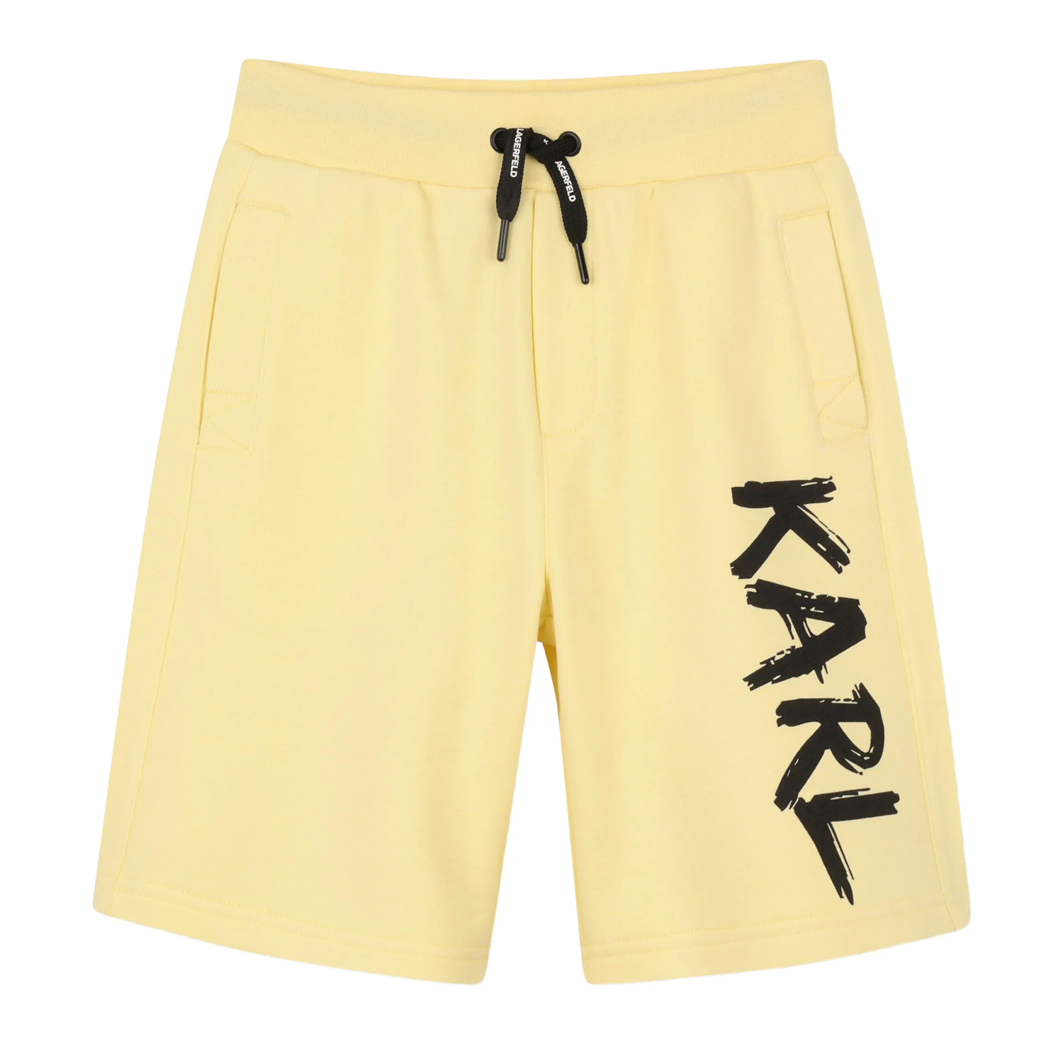 Karl Lagerfeld lime organic cotton jersey shorts, featuring logo in black and drawstring fastening.