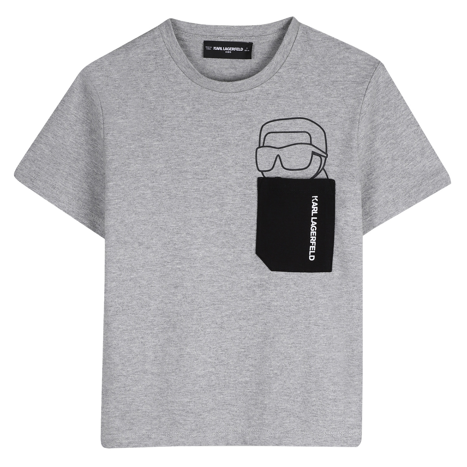 Karl Lagerfeld grey organic cotton t-shirt, featuring a pocket with logo and figure printed.