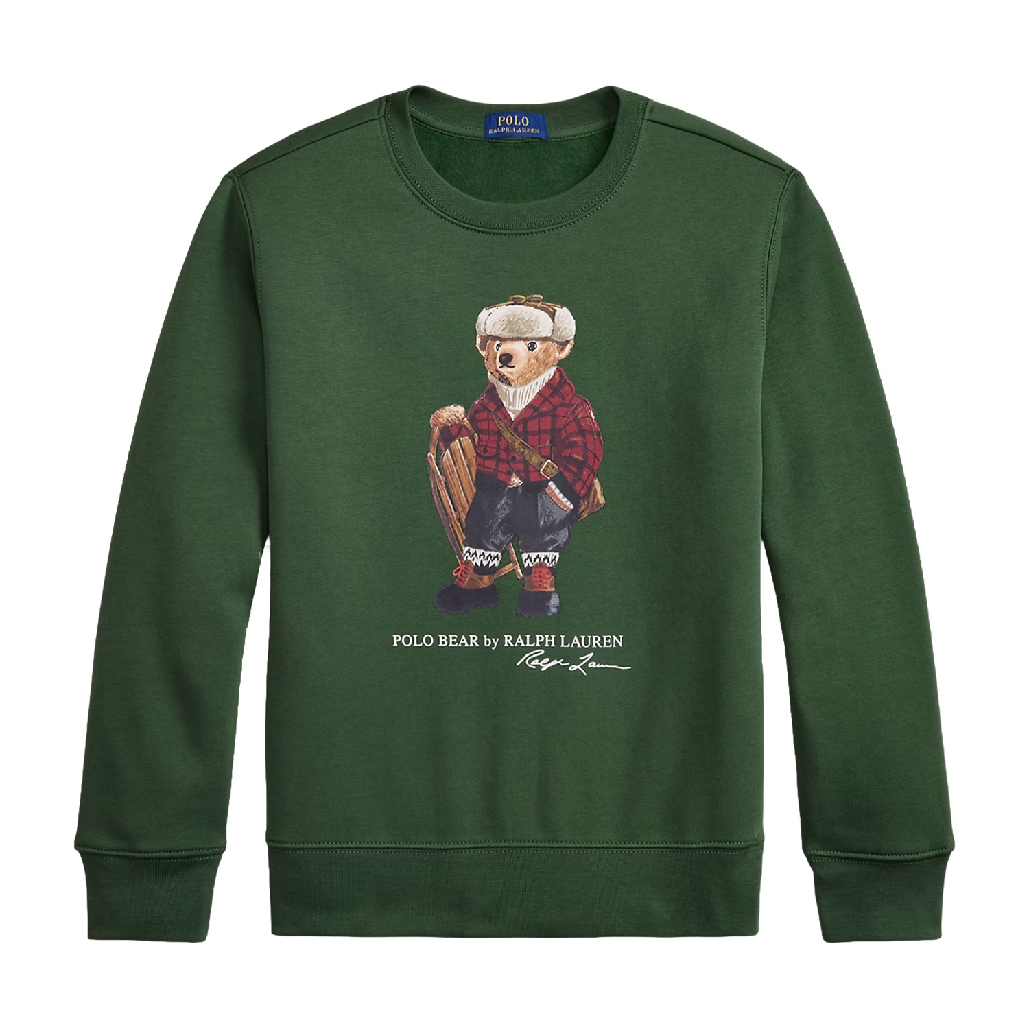 122€Polo Ralph Lauren dark green organic cotton sweatshirt with fleece inner part and a Teddy figure in front. -