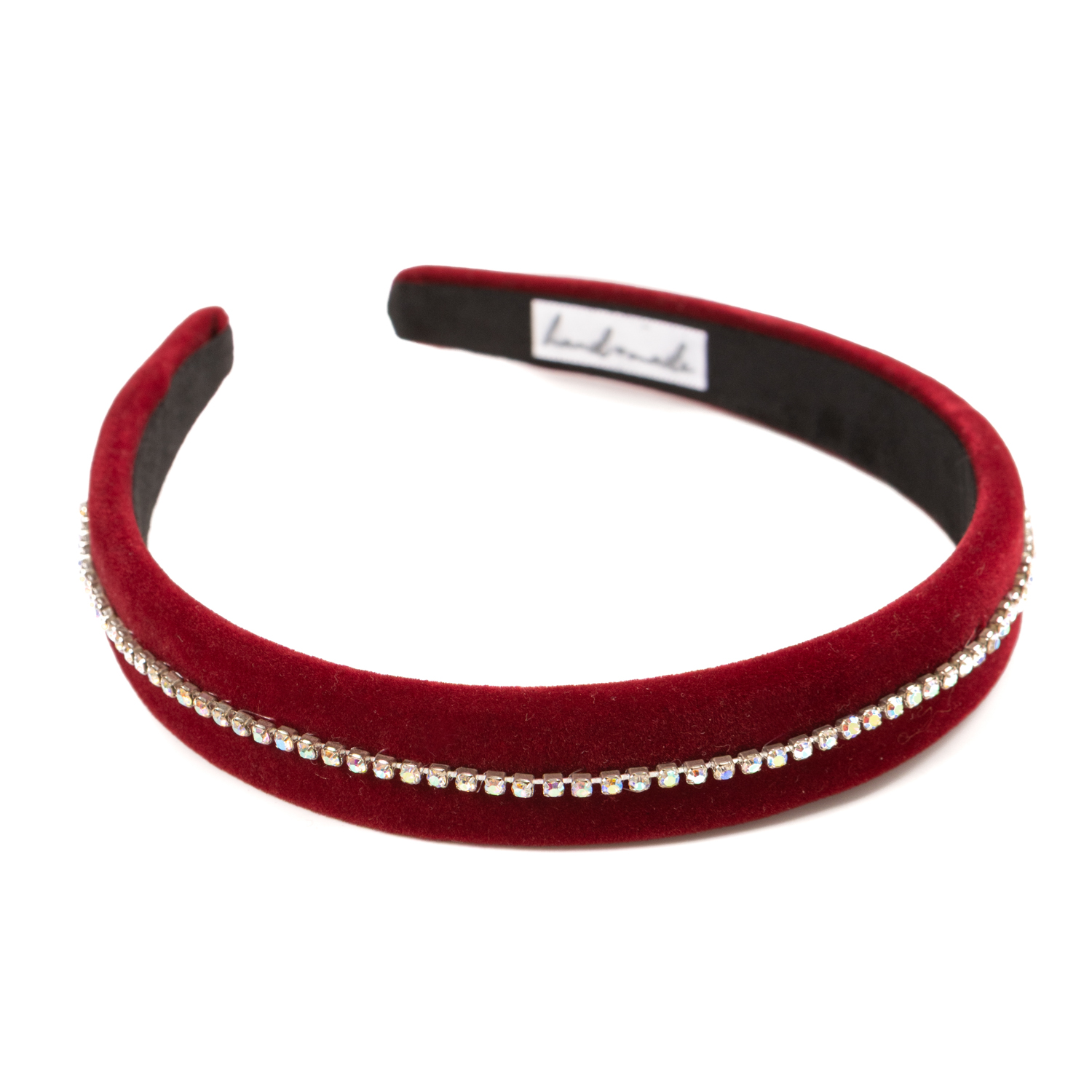25€Handmade bordeaux hairband with irredescent rhinestone stripe. -