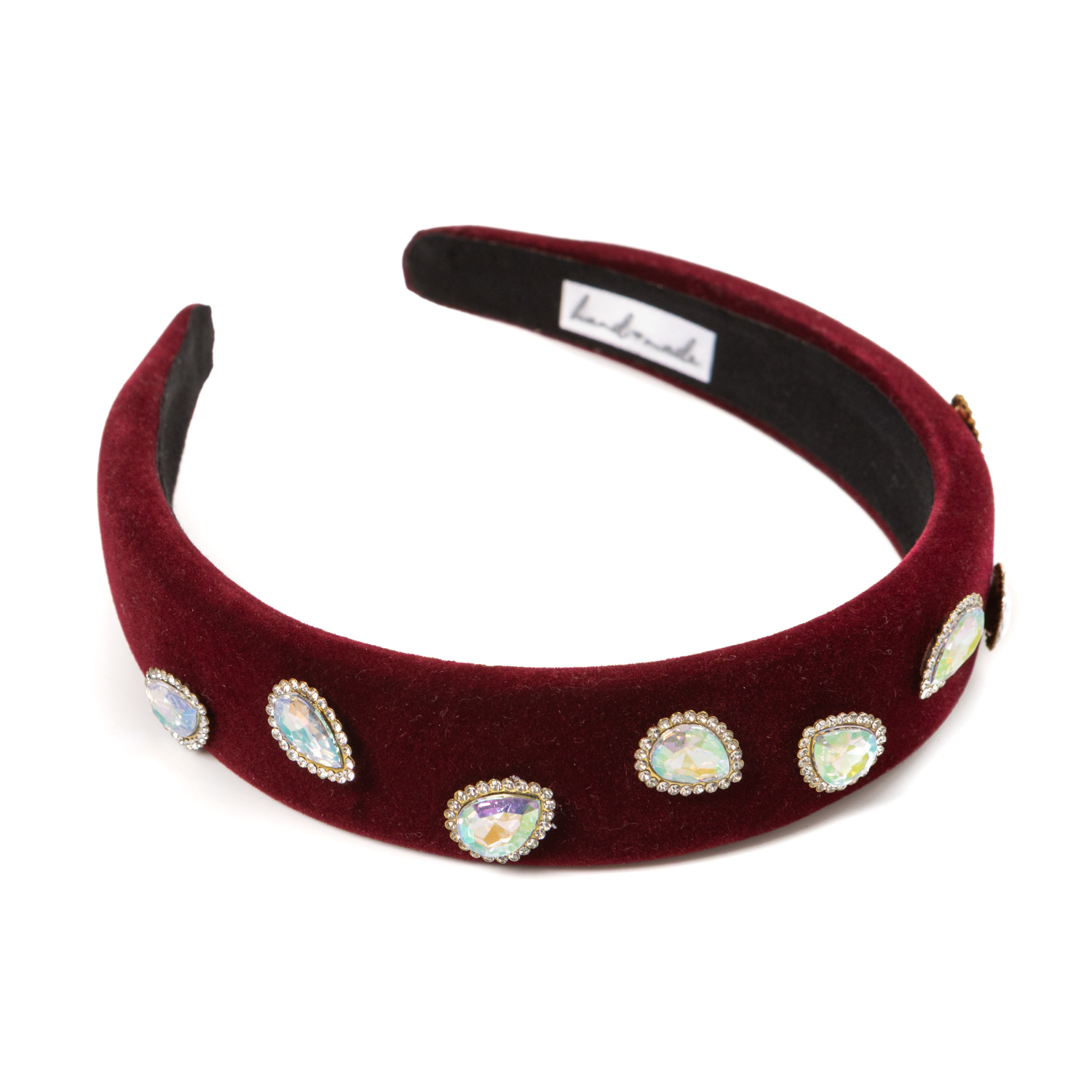 30€Handmade bordeaux hairband with irredescent stone applications. -