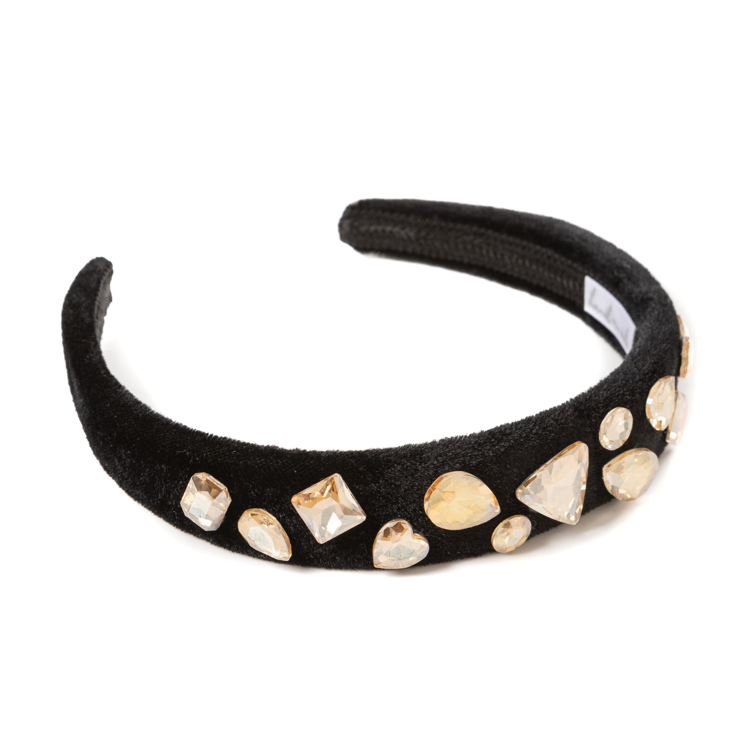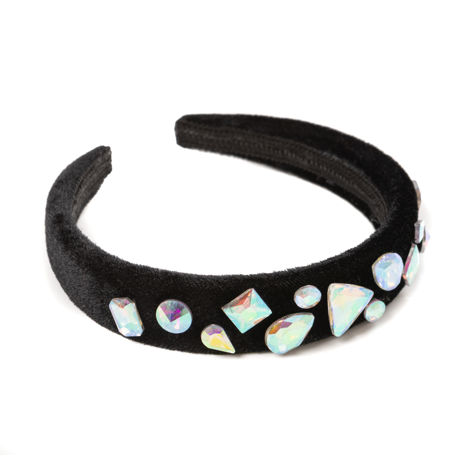 30€Handmade black hairband with irredescent stone applications. -
