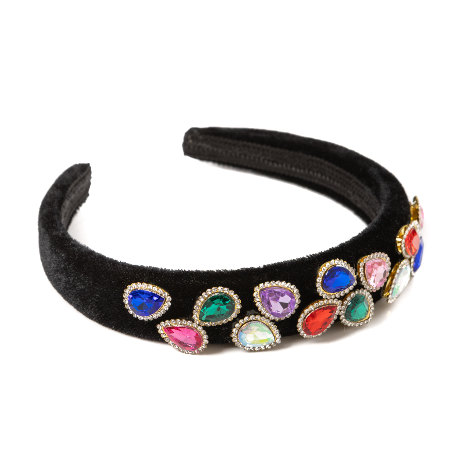 30€Handmade black hairband with multicolor stone applications. -