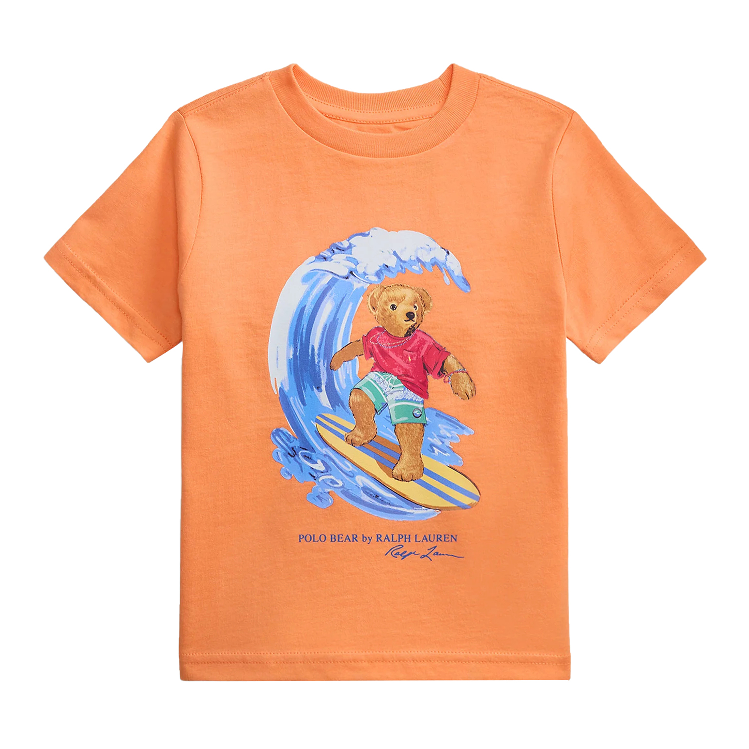 62€Polo Ralph Lauren orange organic cotton t-shirt featuring a teddy-surfer. -