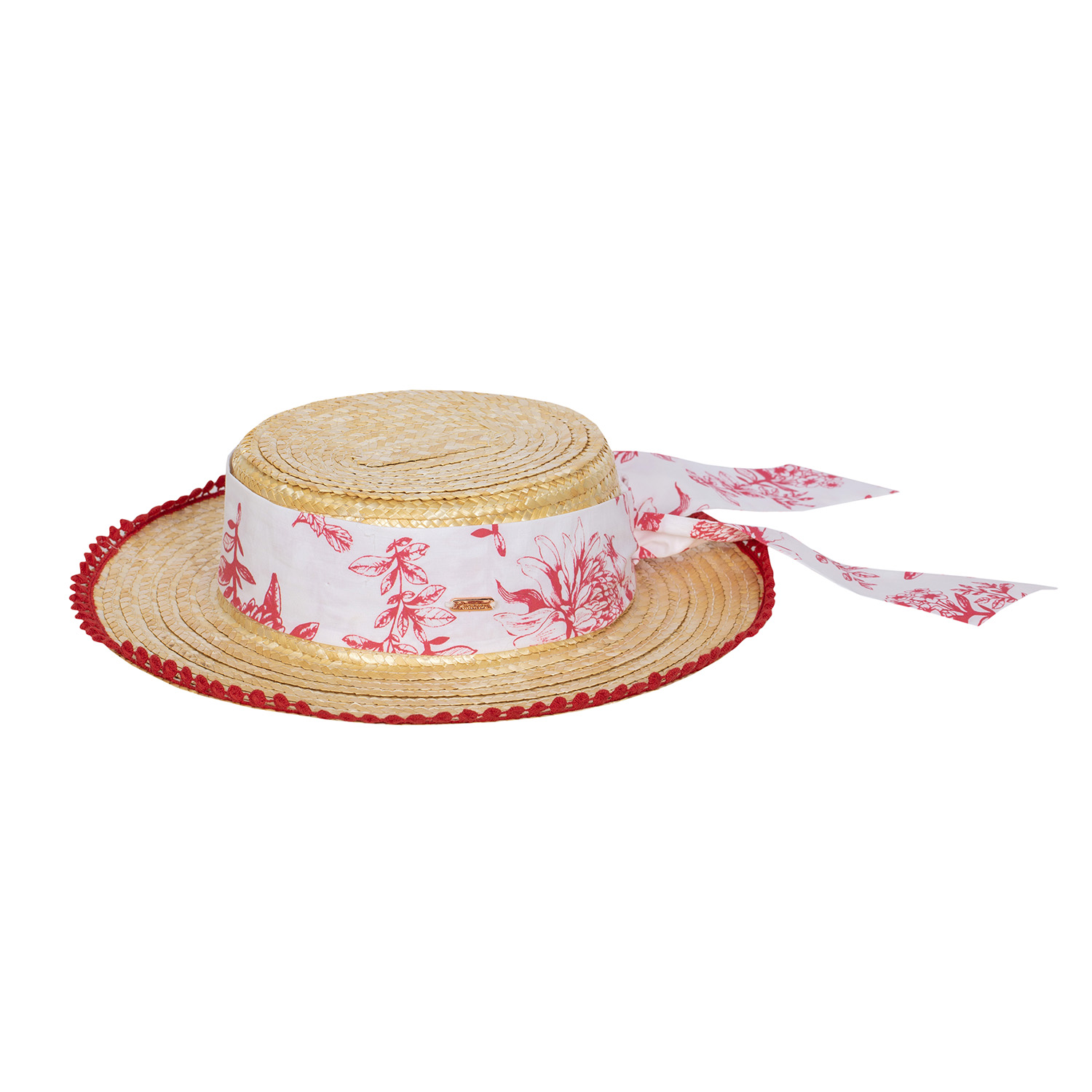 Patachou Red Floral Straw Hat with floral