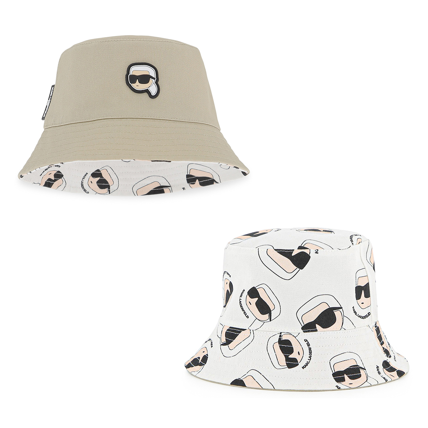 Karl Lagerfeld Beige/White Reversible Bucket Hat