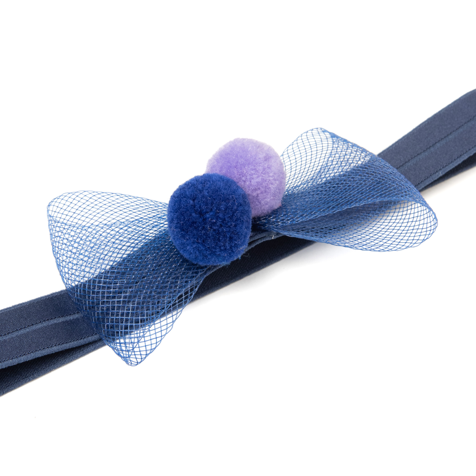Χειροποίητη κορδέλα μαλλιών σε μπλε ρουά χρώμα με εφαρμογή από φιόγκο και δύο pom-pom.