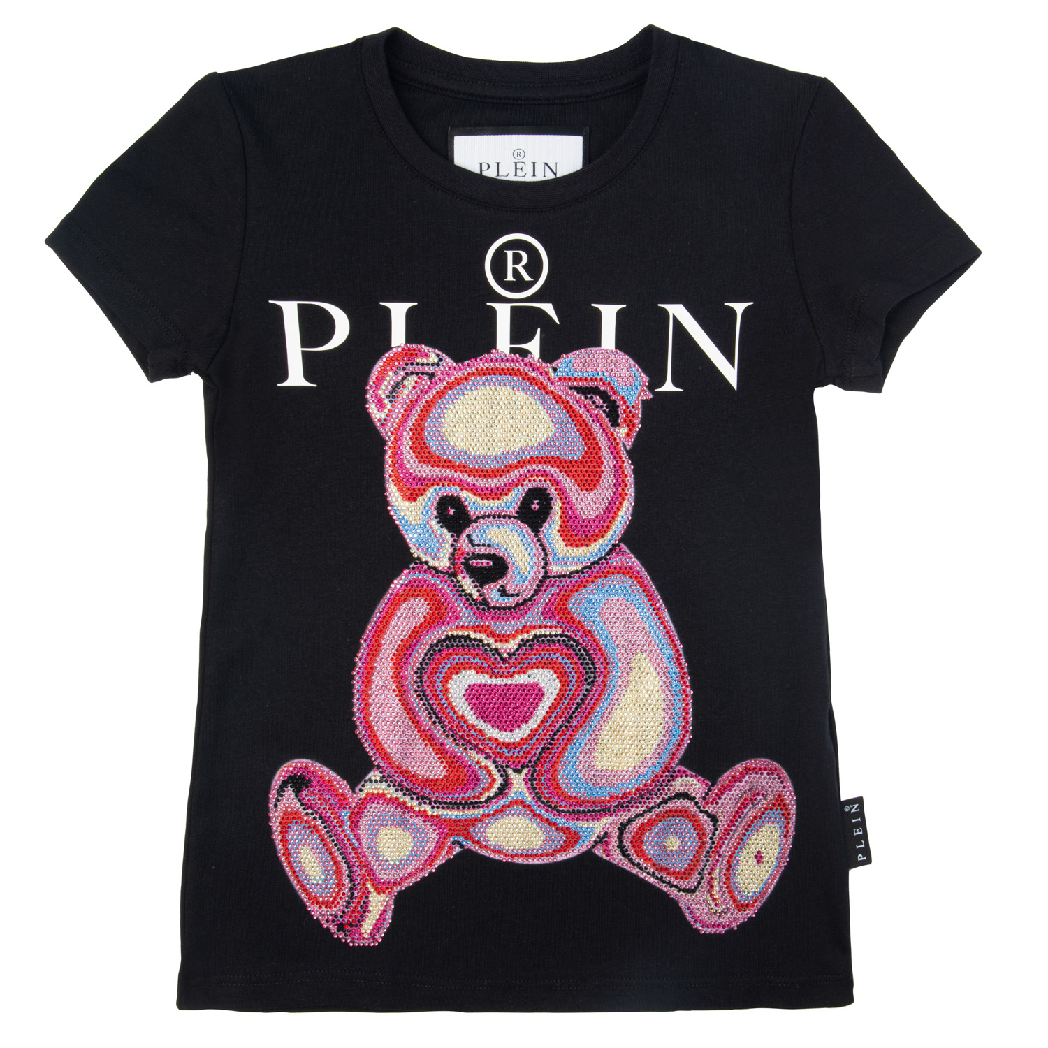Philipp Plein μαύρο βαμβακερό μπλουζάκι με πολύχρωμο Teddy plein από κρύσταλλα.