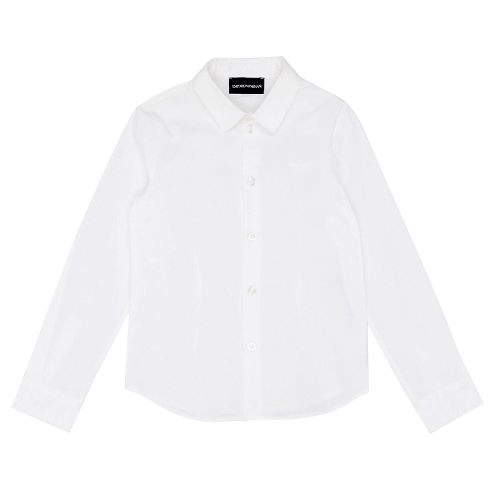Armani White shirt, with white “Armani” logo embroidered on the chest. It is slim fit.