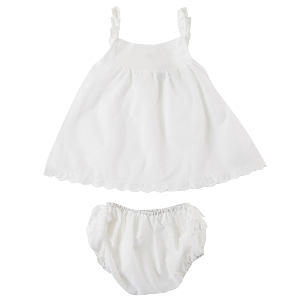 Maria Zeaki handmade white cotton sleeveless baby doll, with white embroideled lace details. It comes with a soft cotton baby toy. The final product may be different, due to be handmade.